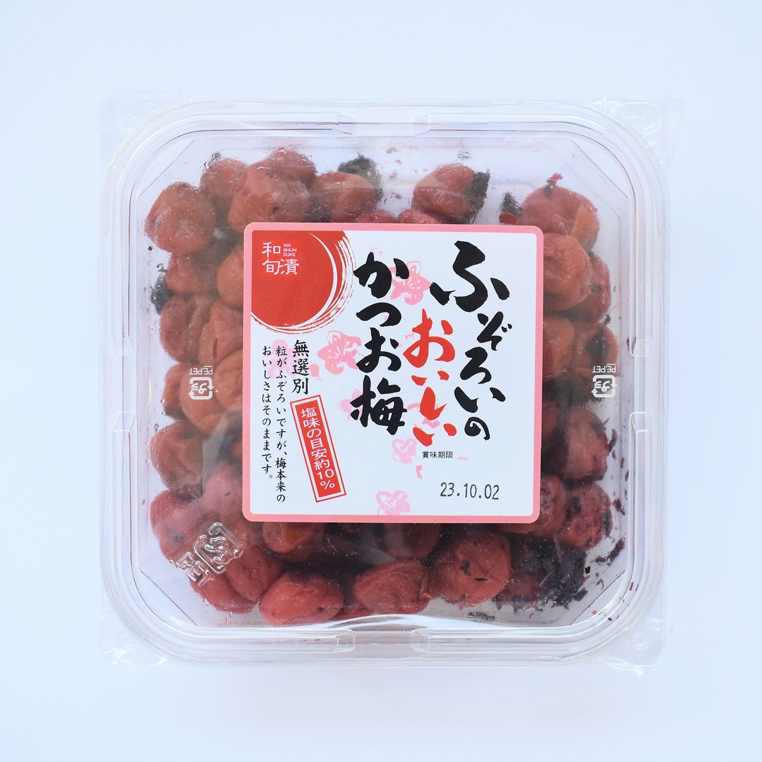 梅、しそ、鰹節、漬け原材料〔異性化液糖、食塩、醸造酢〕/調味料(アミノ酸)、酸味料、甘味料(ステビア)、着色料(赤102)、V.B1