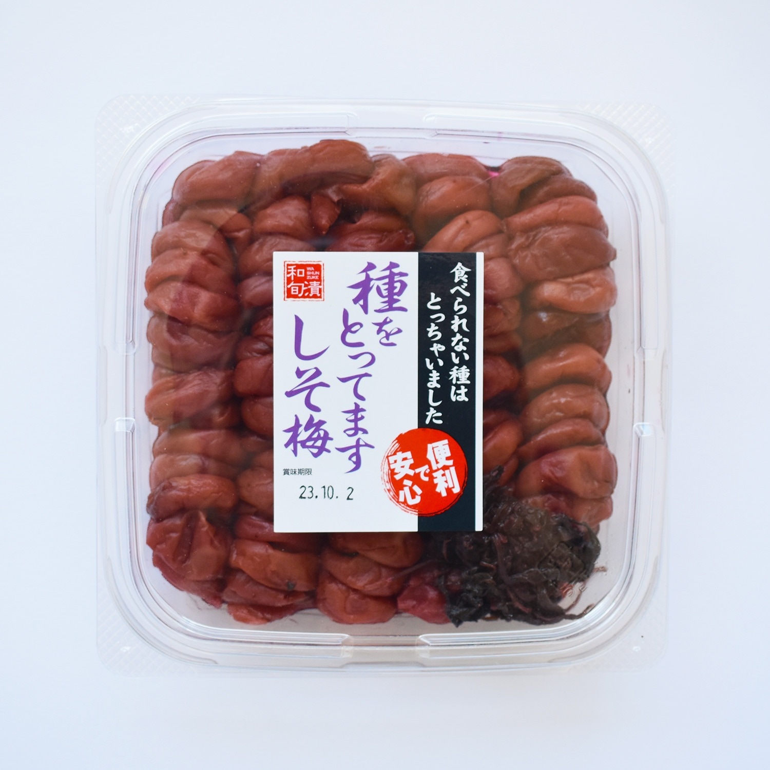 種を取っているので、おにぎりや料理にそのまま使えて便利です。また、しその風味がさわやかな、さっぱりした味に仕上げました。
